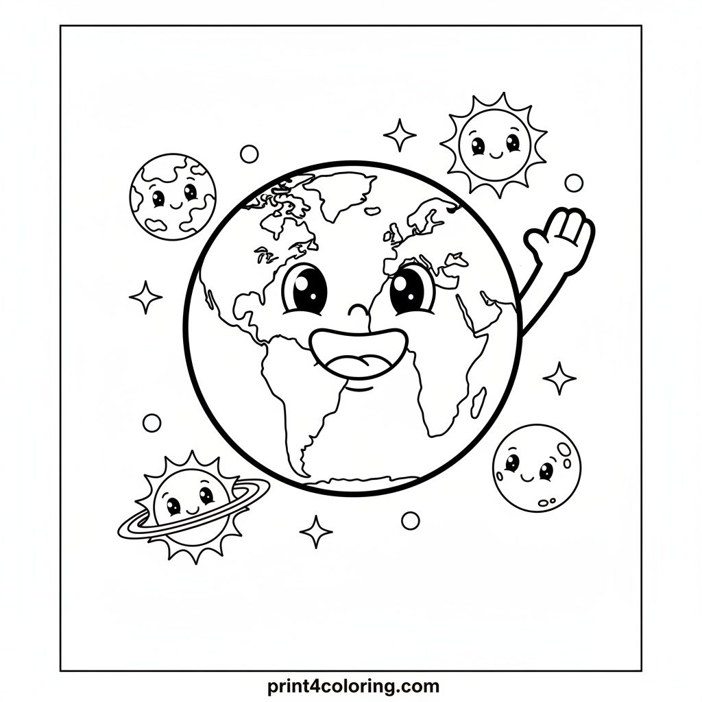 Earth's Happy Space Friends Coloring Page