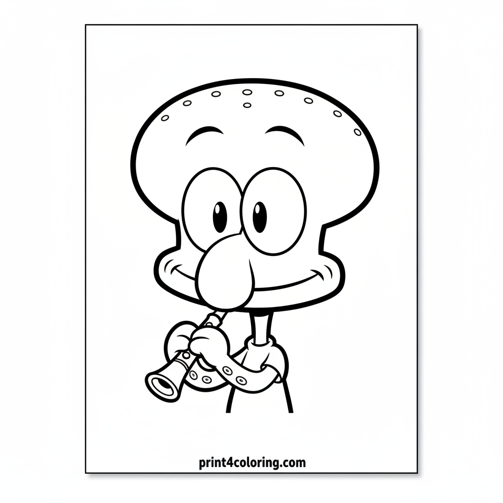 #squidward#spongebob#cartoon#character#music#clarinet#baby#funny#coloring-page#printable