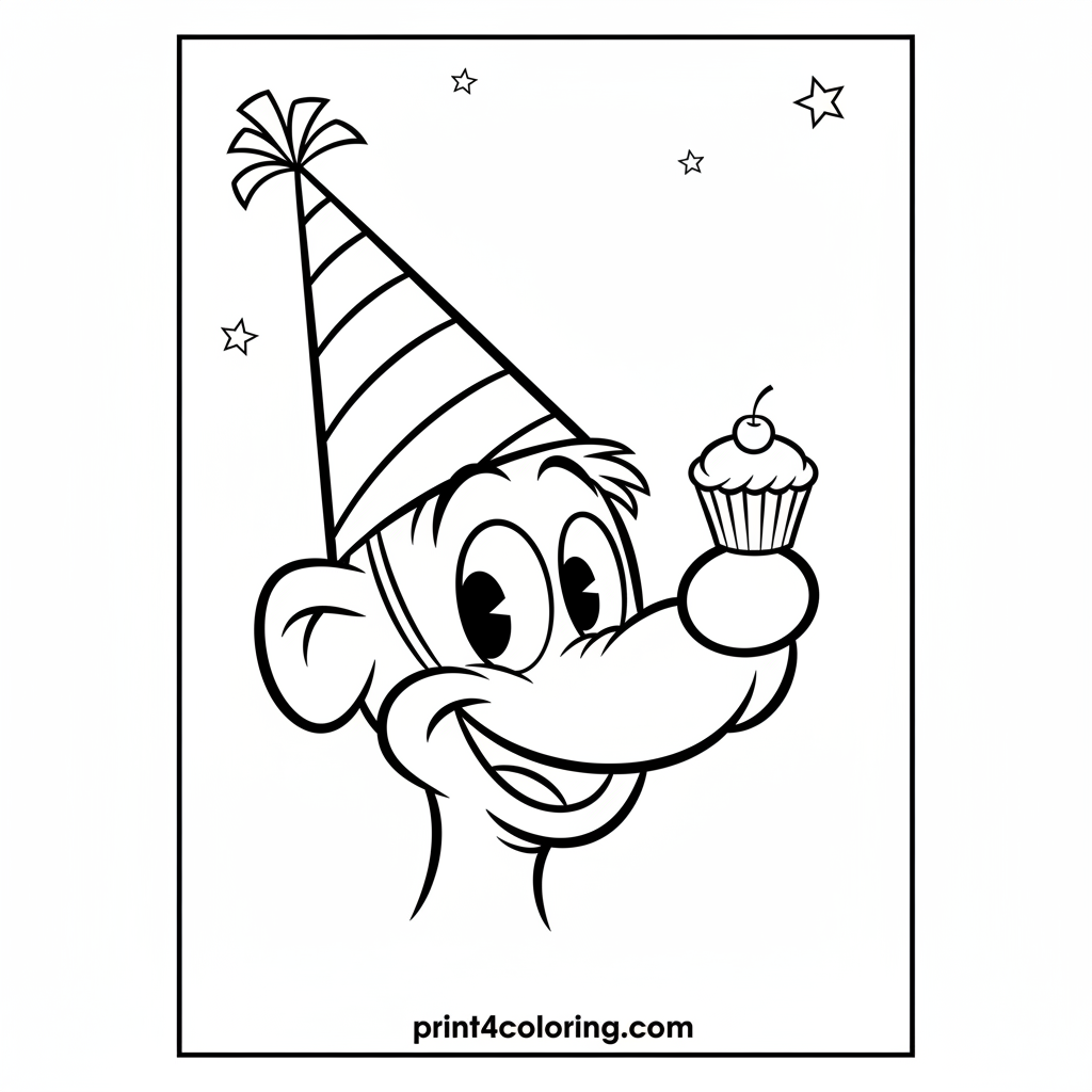 Eugene's Goofy Party Hat Adventure Coloring Page