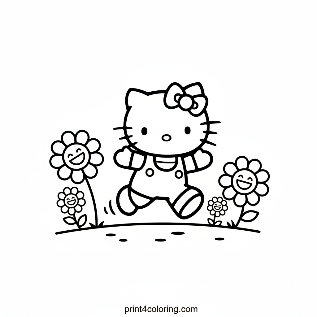 Hello Kitty's Happy Meadow Skip Coloring Page