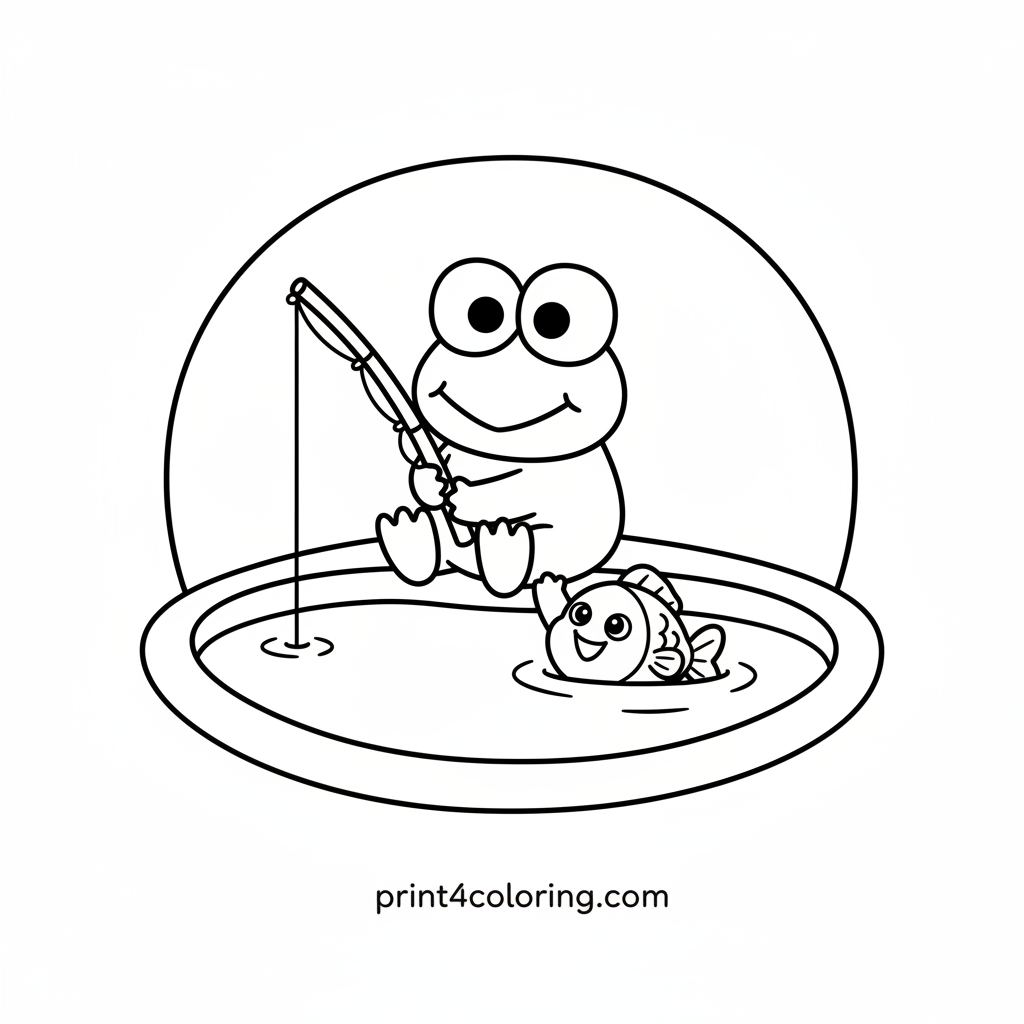 #keroppi#frog#fish#pond#fishing#cute#peaceful#sanrio#coloring-page#printable