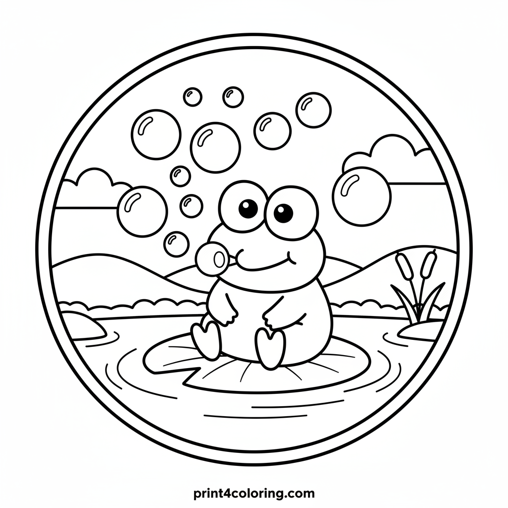 Join Keroppi by his cozy pond as he creates a magical stream of shimmering bubbles! Watch each playful bubble float gracefully, reflecting tiny, soft rainbows for you to color. This heartwarming scene captures the joy of friendship and simple wonders, inviting you to add your brightest colors to Keroppi's enchanting world.