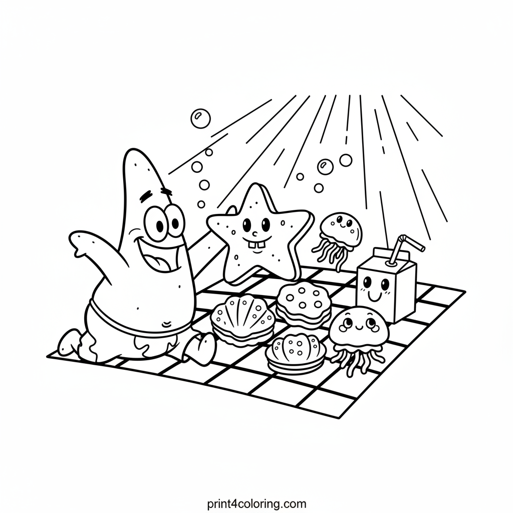 Patrick's Sunny Seafloor Picnic Coloring Page