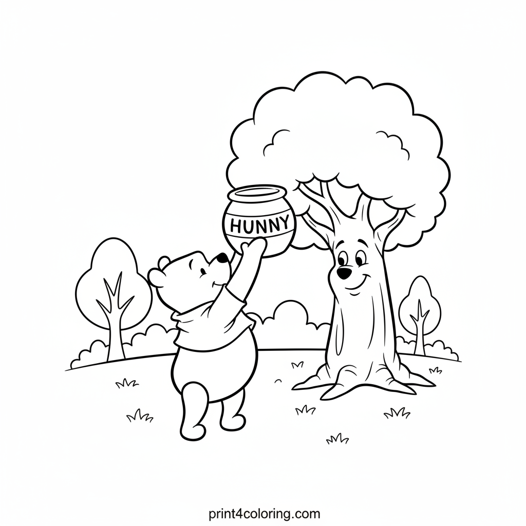 Pooh's Sweet Hunny Pot Adventure Coloring Page