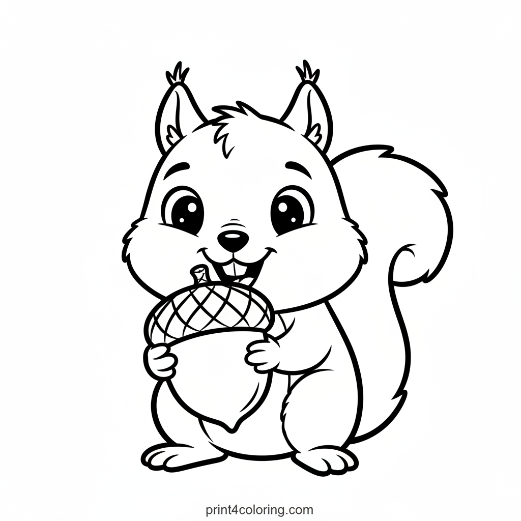 Meet Sandy, the happiest squirrel in the forest, enjoying a giant, delicious acorn! With her big, friendly eyes and soft, fluffy fur, she's ready for you to add a splash of color to her world. Imagine the cozy forest around her as she savors her special treat. This charming close-up is perfect for little artists!