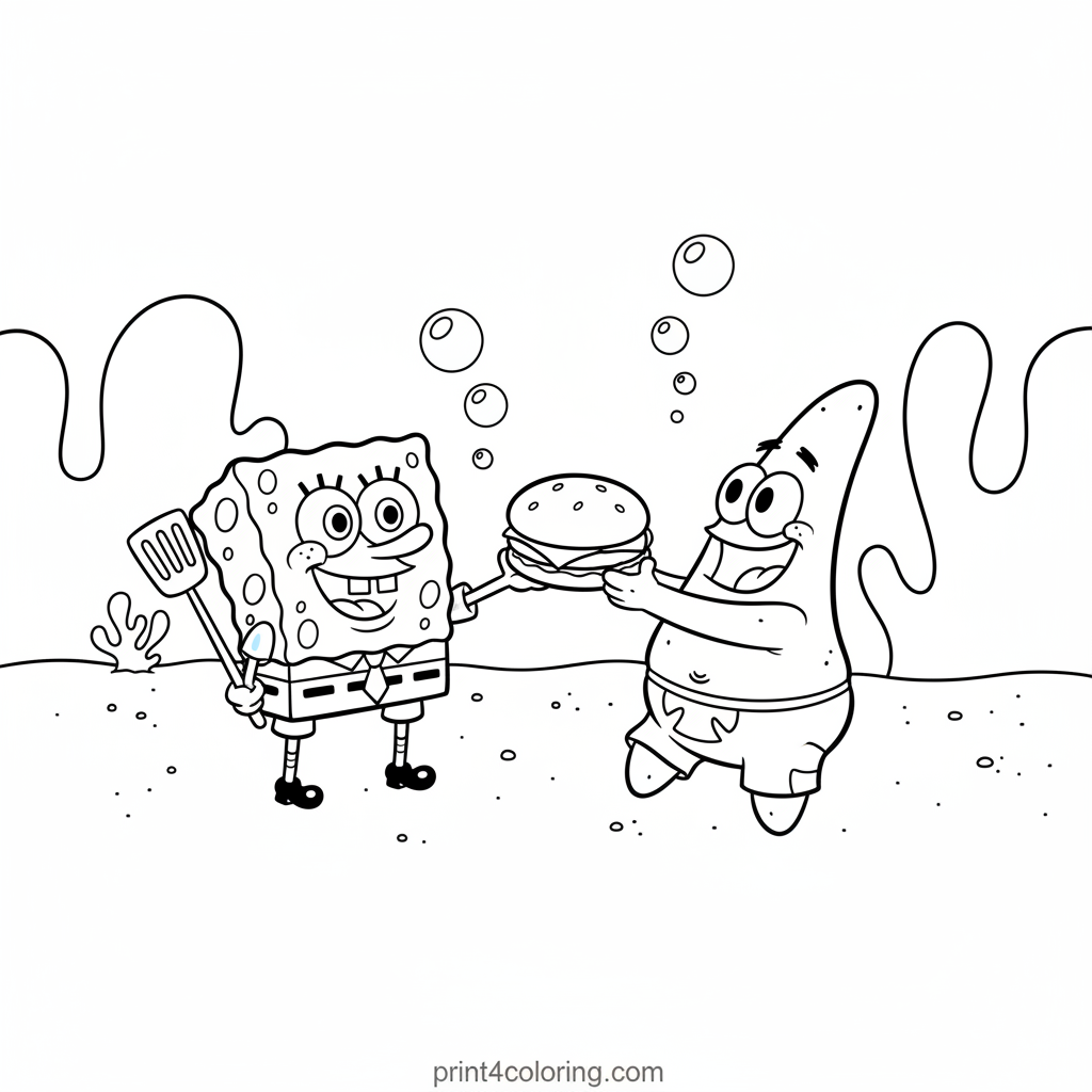SpongeBob and Patrick: Best Friends and Krabby Patties Coloring Page