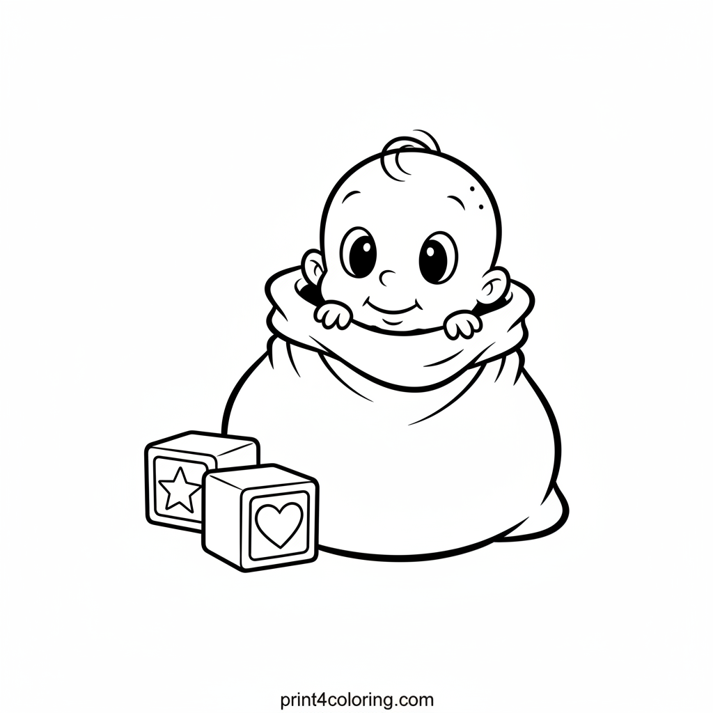 Dive into a world of cuteness with Swee'Pea, the adorable baby, enjoying a cozy nap! With big, curious eyes peeking from a soft sack, and friendly toy blocks nearby, this page is perfect for little artists. Bring this sweet scene to life with your favorite colors and make it extra snuggly!
