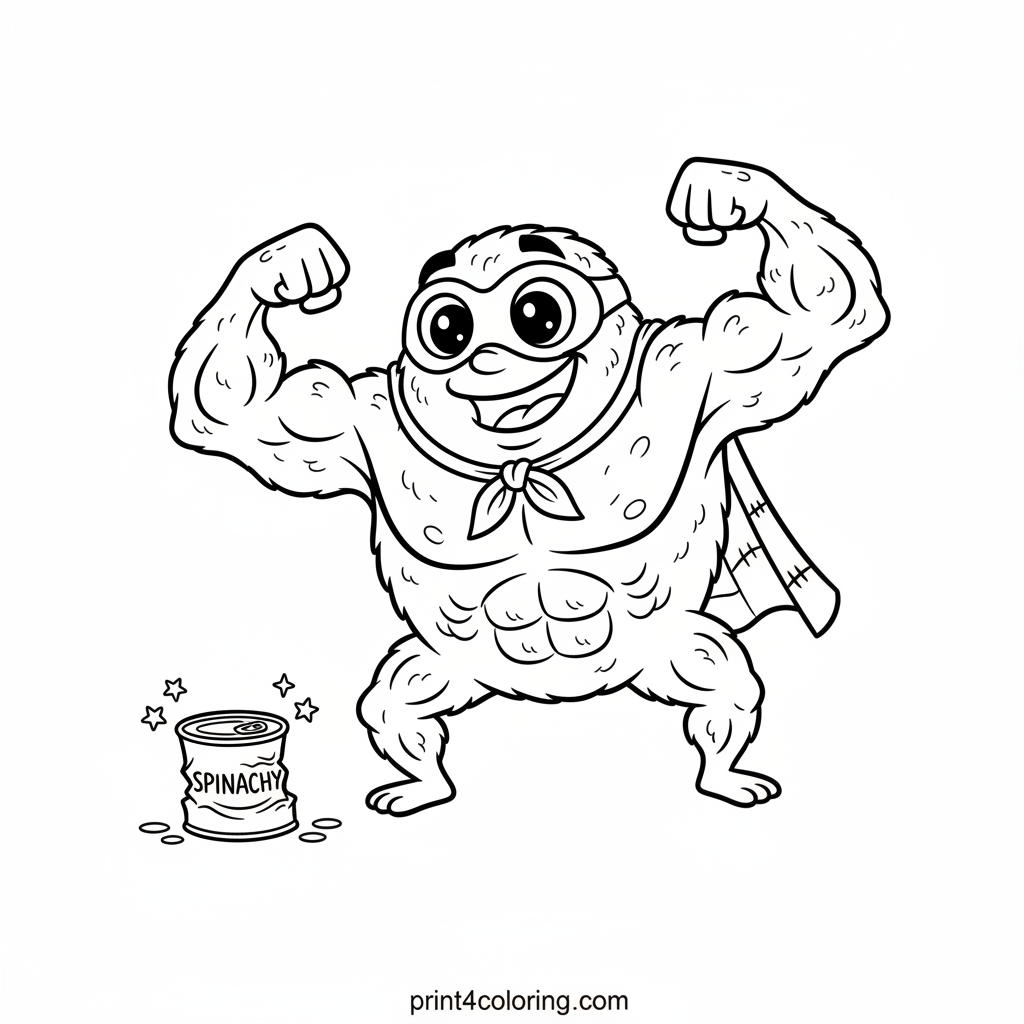 #monster#strongman#silly#spinach#funny#fantasy#coloring-page#printable