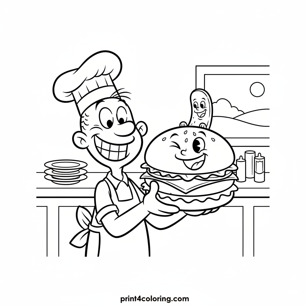 Wimpy's Giggle Burger Adventure Coloring Page