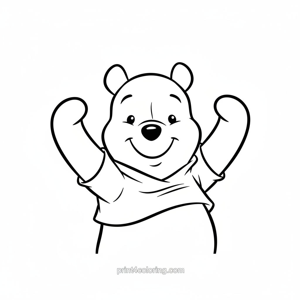 Join Winnie the Pooh as he enjoys his daily 'stoutness exercises'! This delightful close-up portrait shows Pooh bear playfully stretching his arms and legs with a big, happy smile. Grab your crayons and add vibrant colors to everyone's favorite bear as he wiggles and stretches, ready for new adventures!