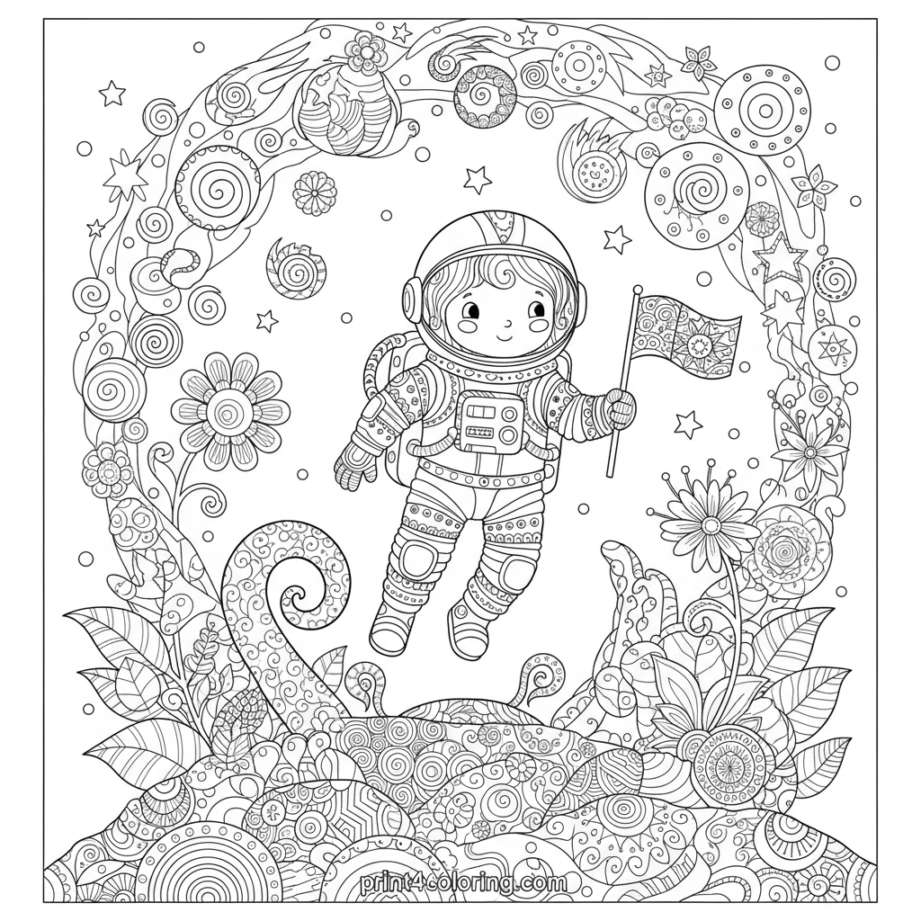 #astronaut#space#alien-planet#galaxy#exploration#zentangle#stars#sci-fi#detailed#coloring-page#printable