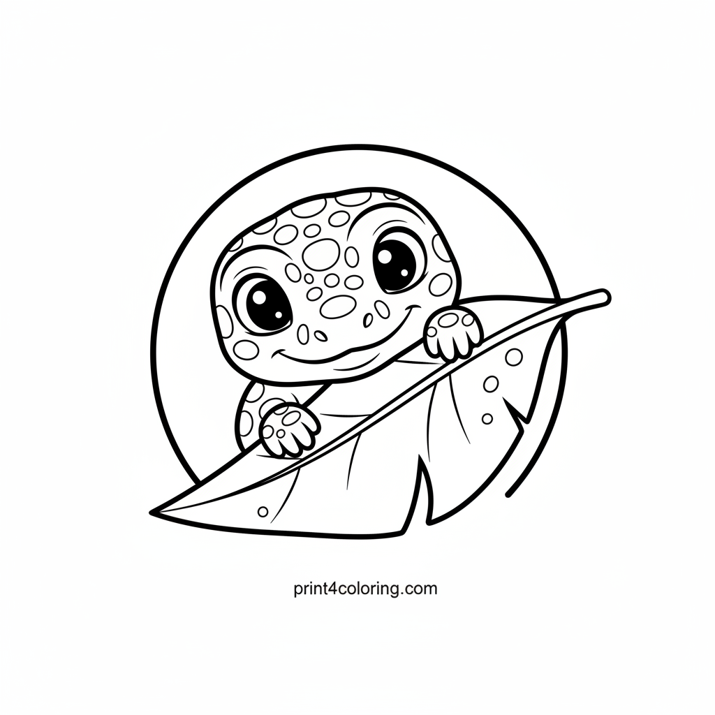 Get ready for some jungle fun with this adorable baby Komodo dragon! With big, curious eyes, this little reptile is playing a friendly game of peek-a-boo from behind a giant, lush tropical leaf. Grab your crayons and bring this playful scene to life with vibrant colors. It's a delightful adventure waiting for your artistic touch!