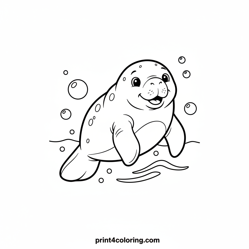Bubbly Manatee's Gentle Glide Coloring Page