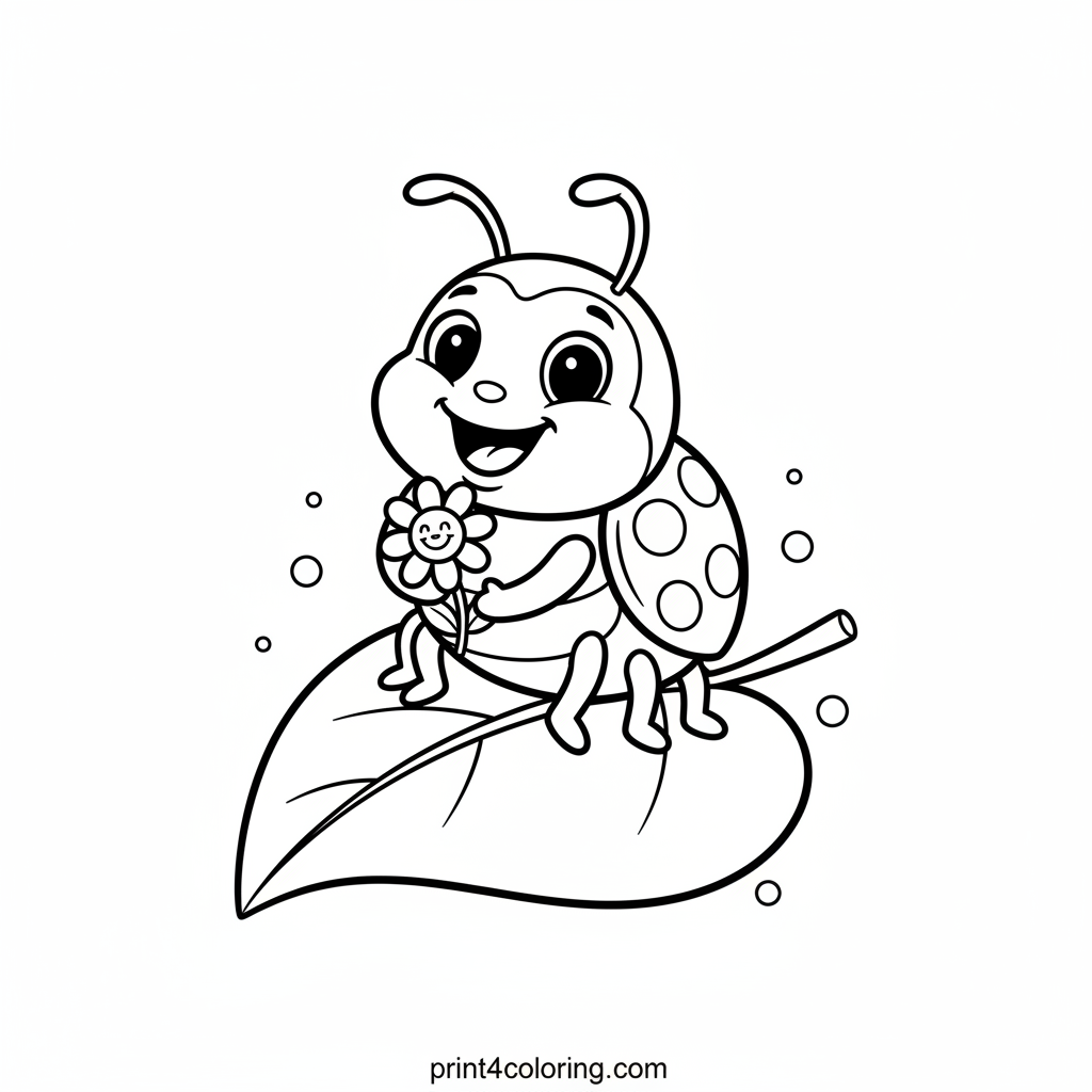 Say hello to Buddy Beetle, a chunky, happy friend with a huge smile and kind eyes! He's sitting gently on a big green leaf, proudly holding a tiny, cheerful daisy. Grab your crayons and bring this adorable scene to life with your favorite colors. A perfect easy page for little hands!