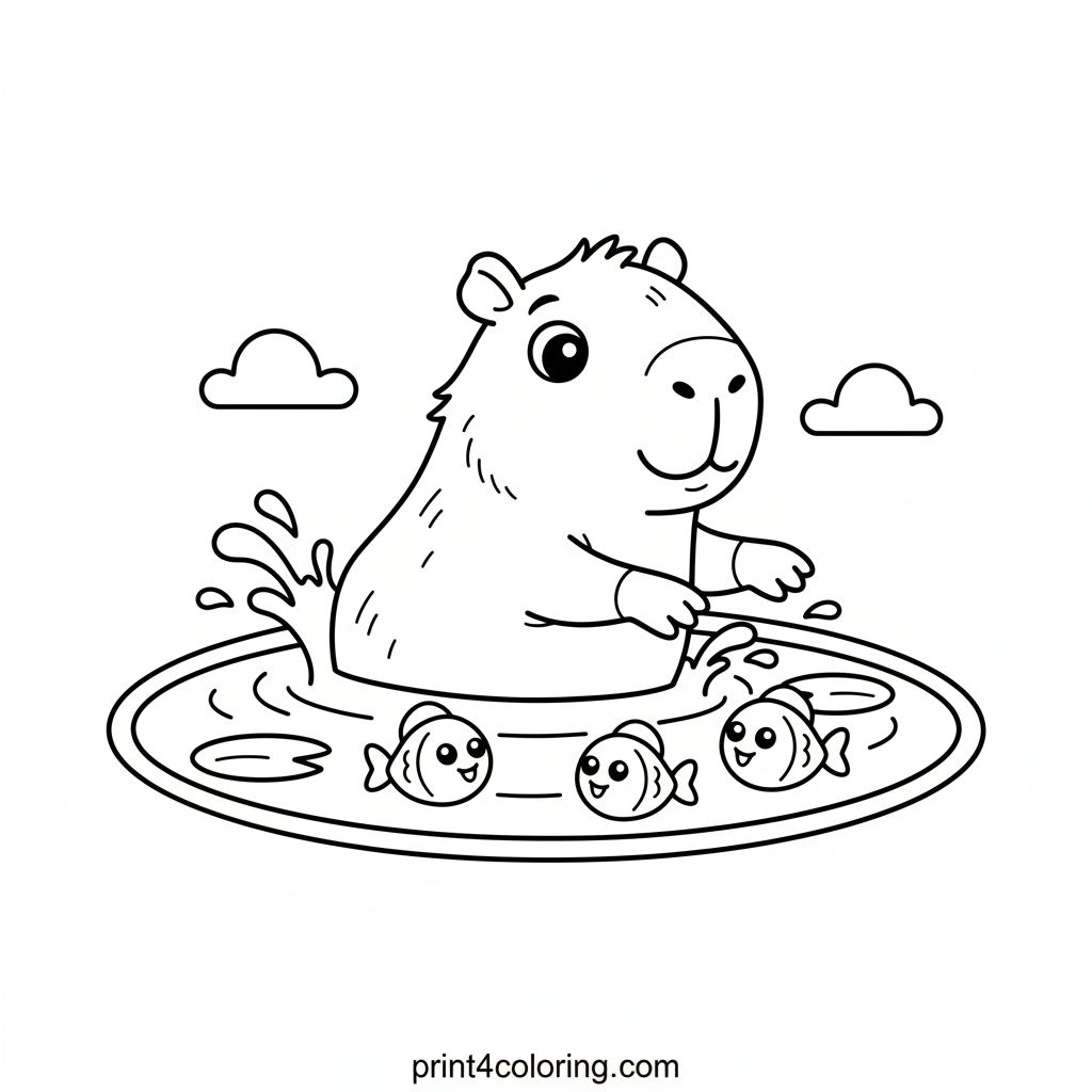 Capybara's Happy Pond Splash Coloring Page