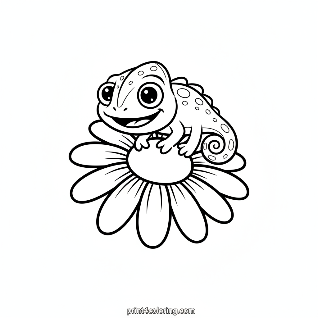 Meet our cheerful chameleon friend, happily perched on a big, beautiful daisy! With its friendly, wide eyes and gently curled tail, this cute reptile is ready for a burst of color. Imagine the vibrant shades you can use to make it blend in or stand out. A delightful picture for young artists!