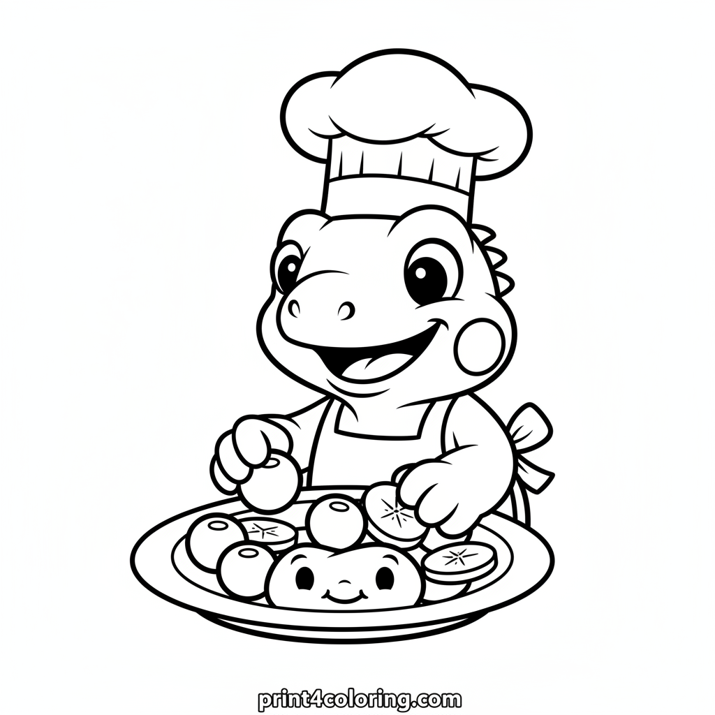 #iguana#chef#fruits#cooking#animals#coloring-page#printable