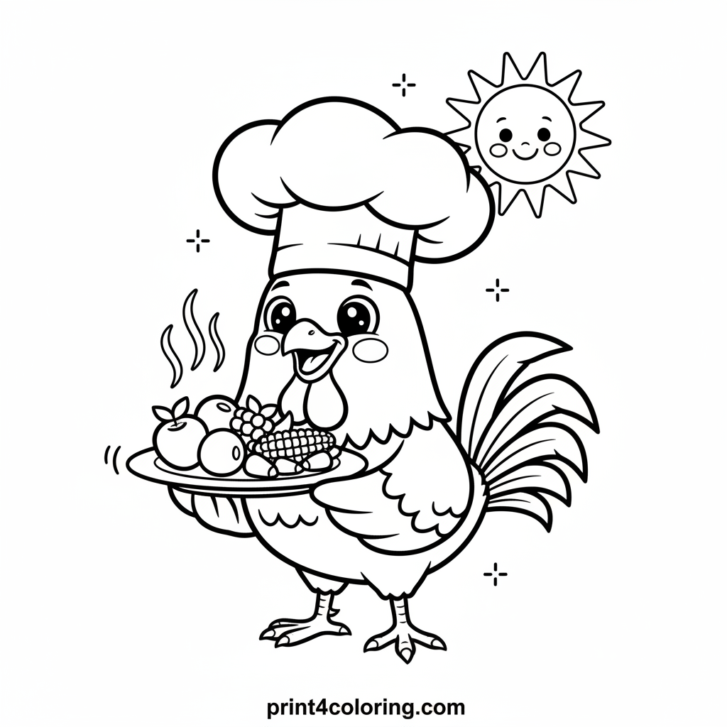 Chef Rooster's Berry & Corn Delight Coloring Page