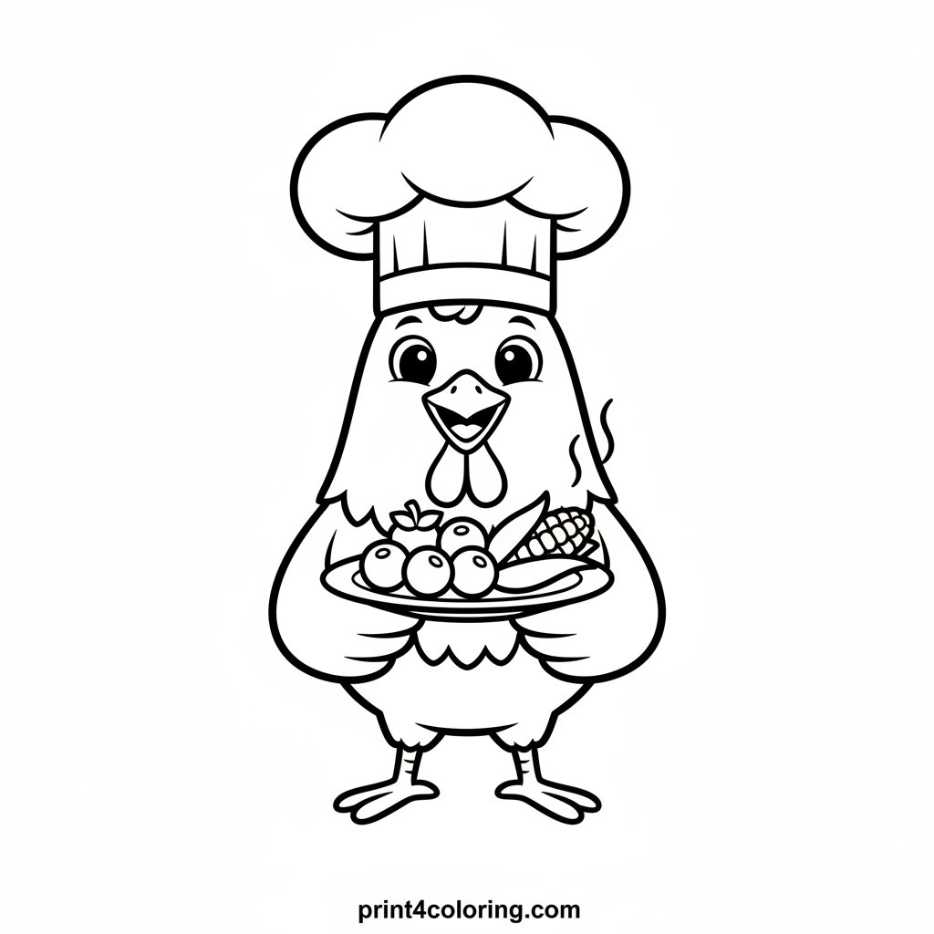 Chef Rooster's Berry & Corn Delight Coloring Page