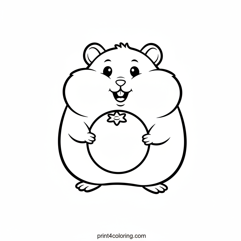 Meet our super cute hamster, so round and fluffy, with cheeks puffed out from carrying a giant, juicy blueberry! Watch as this little adventurer waddles along, trying to balance its big prize. Get ready to add vibrant colors to this adorable, wobbly journey. It's a sweet and funny scene!