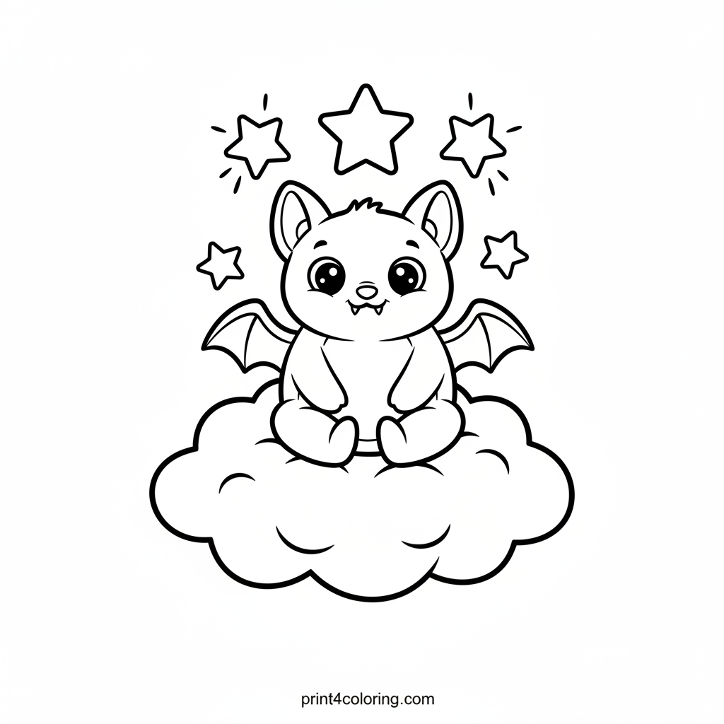 Cloud-Hopping Star-Gazer Bat Coloring Page