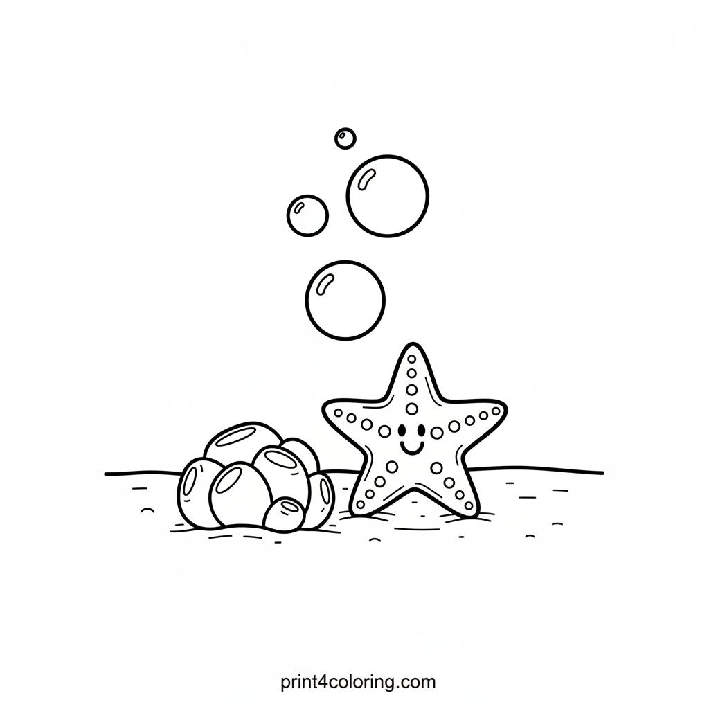 Dive into an ocean adventure with a curious starfish! Watch as it uses its special tube feet to tiptoe across the soft sandy seafloor. It's heading towards a beautiful, bumpy coral formation, with playful bubbles floating all around. Grab your crayons and bring this vibrant underwater world to life!