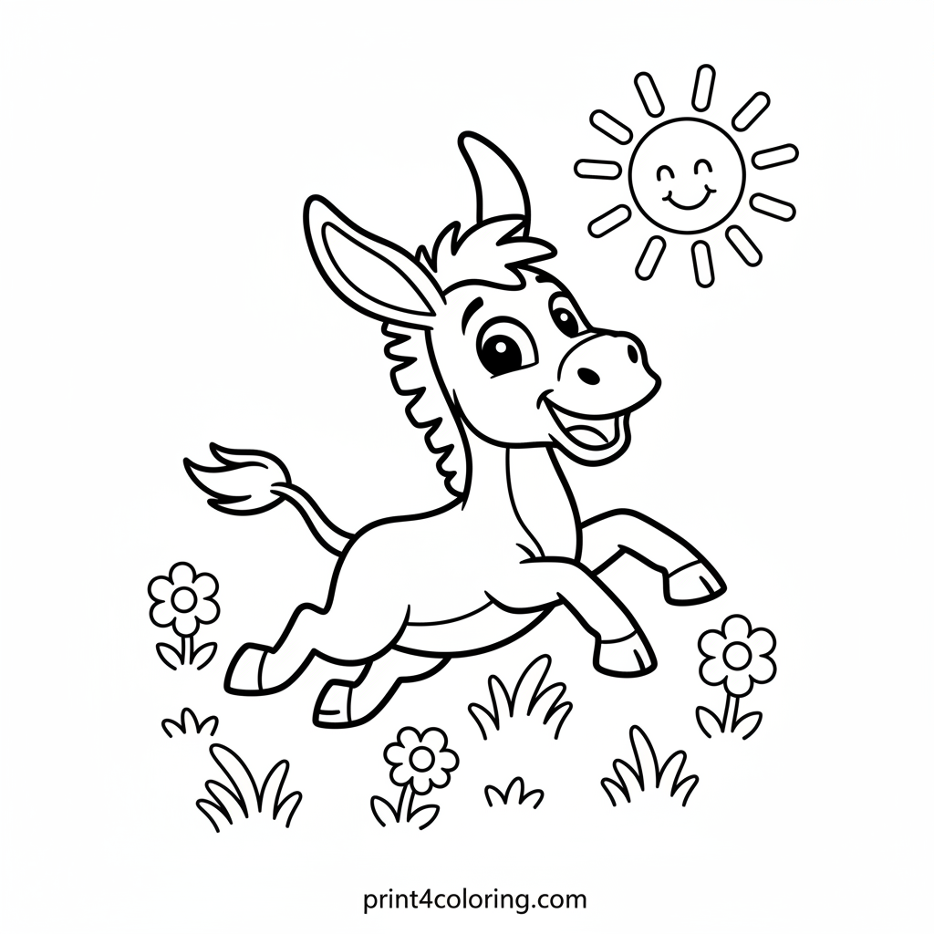 #donkey#gallop#meadow#happy#farm-animal#sunny#animal#fun#coloring-page#printable