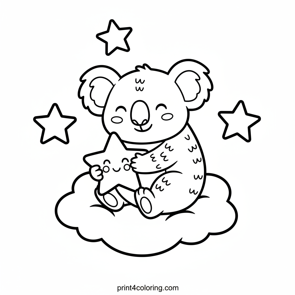 Dreamy Koala's Starry Cloud Ride Coloring Page