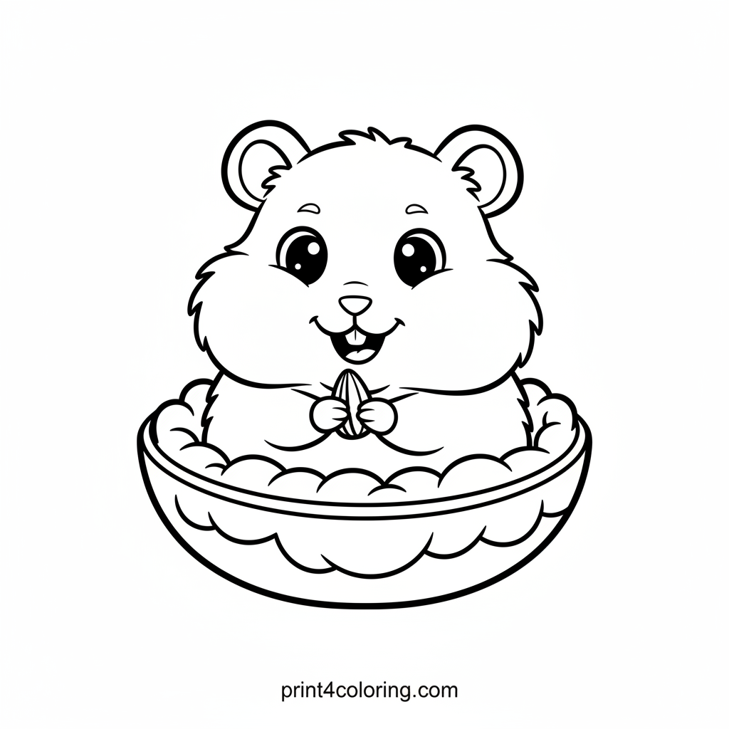 Fluffy Hamster's Cozy Snack Time Coloring Page