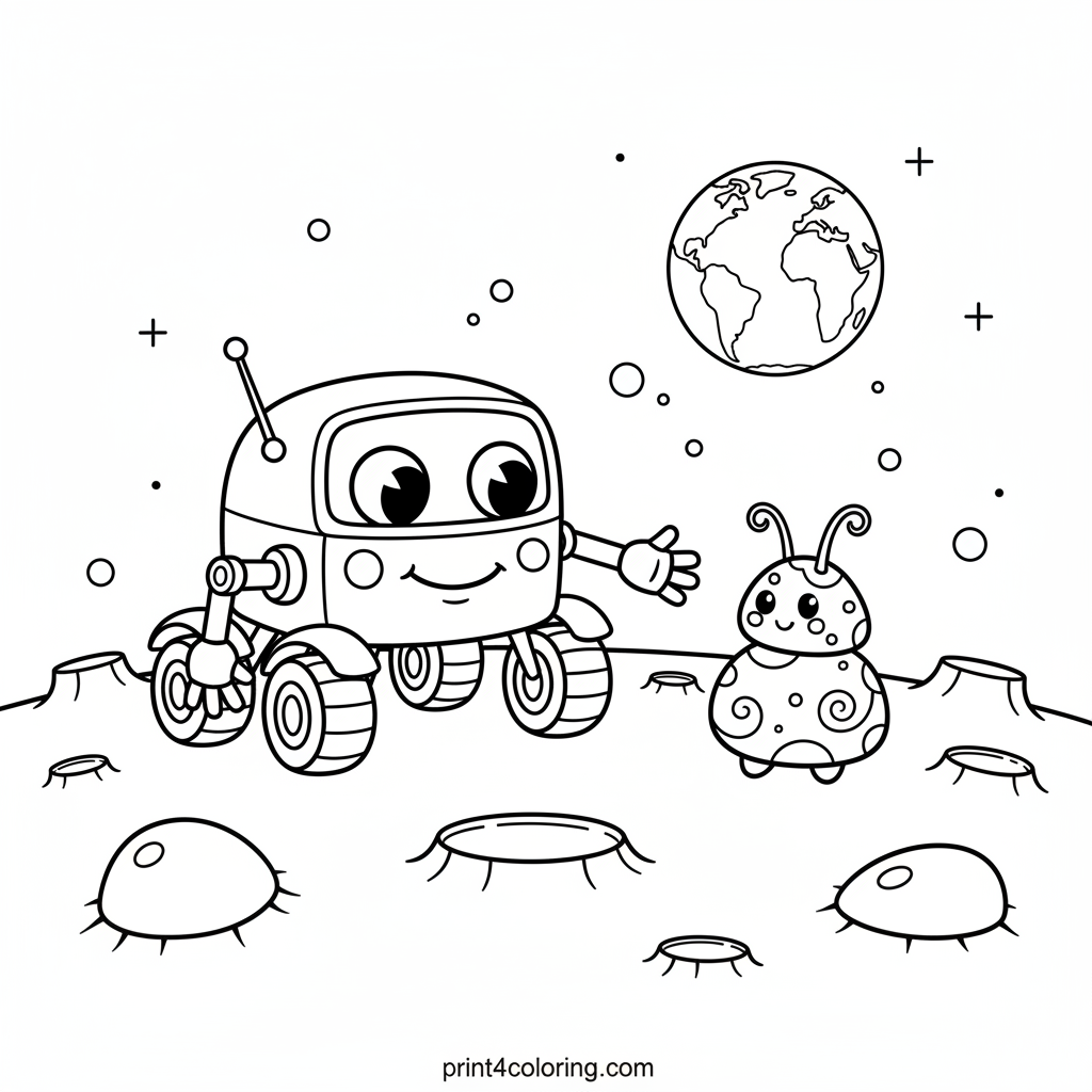 Friendly Rover's Lunar Friend Discovery Coloring Page