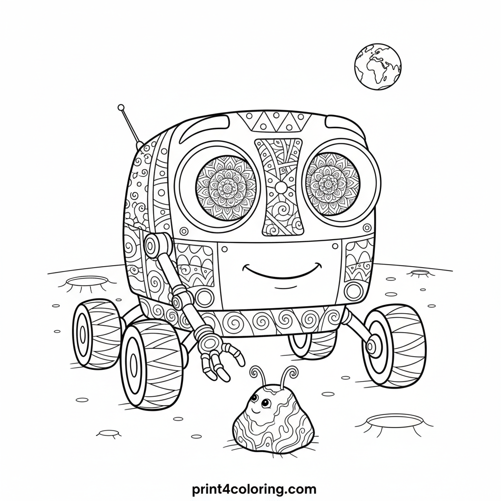 Friendly Rover's Whimsical Lunar Welcome Coloring Page