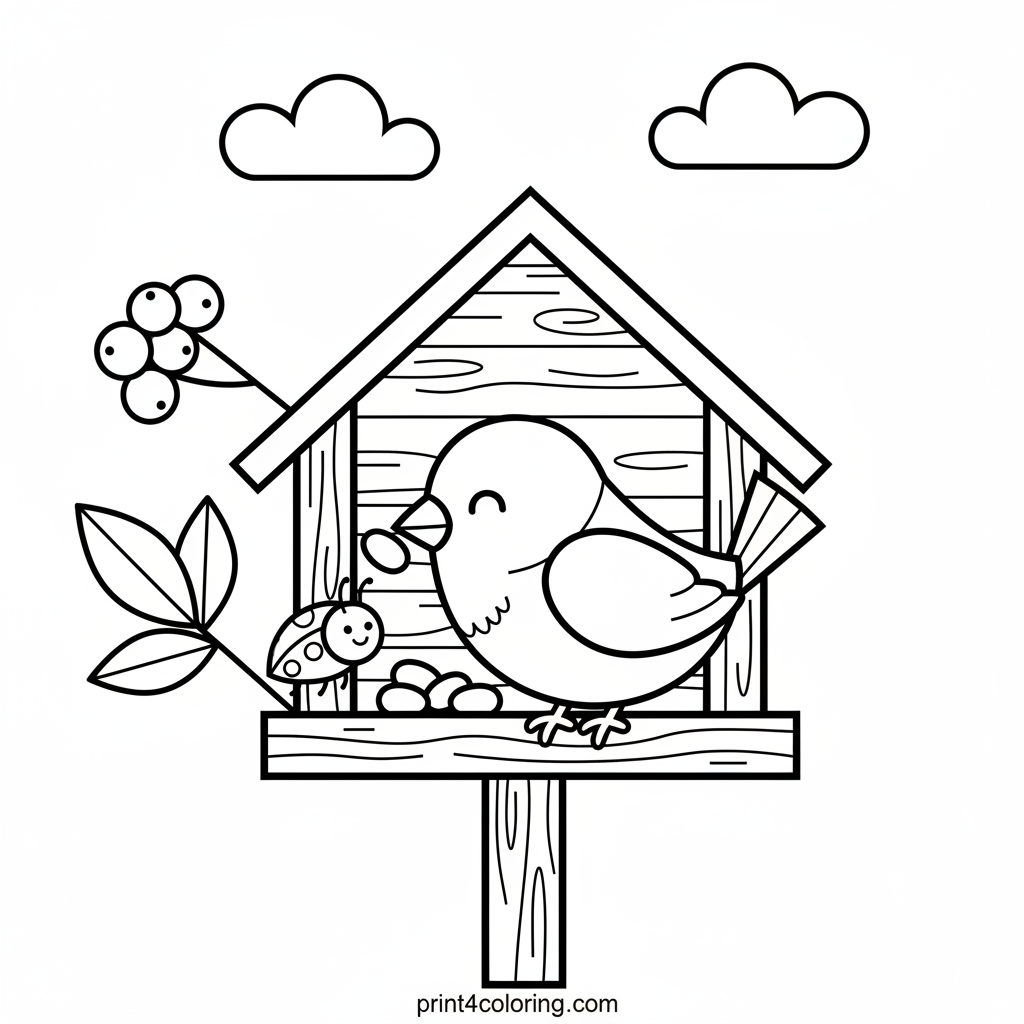 #sparrow#bird#ladybug#bird-feeder#garden#animals#easy#coloring-page#printable