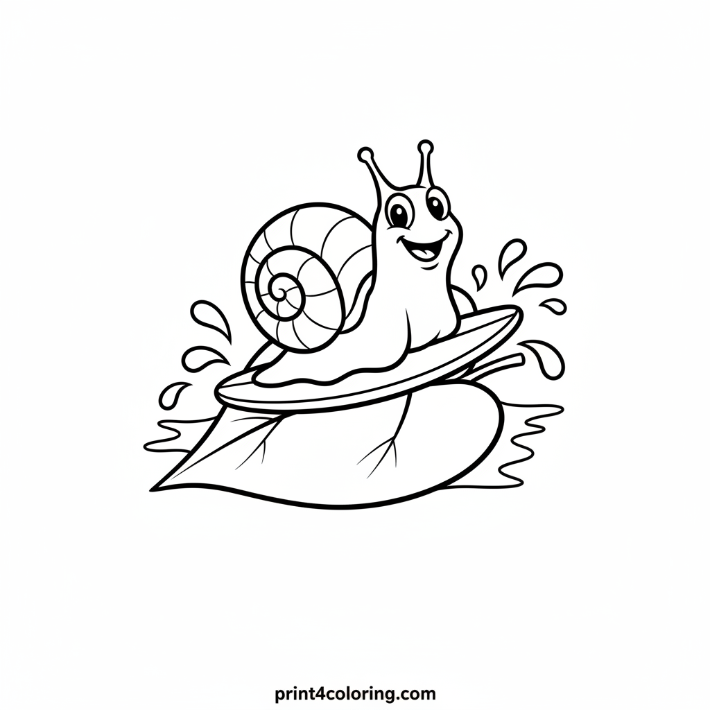 #snail#leaf#surfing#nature#fun#giggling#water#easy#coloring-page#printable