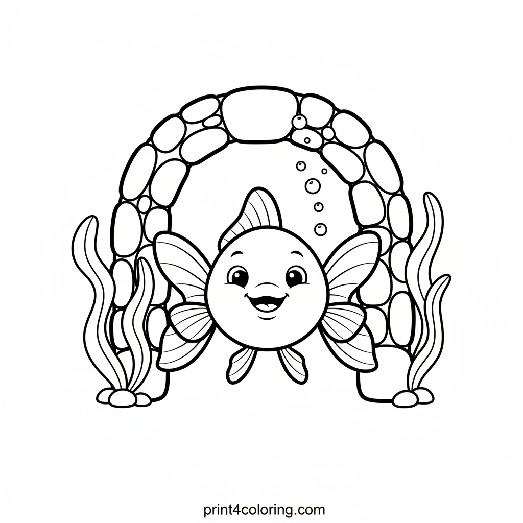 Dive into a magical underwater world! A curious goldfish explores a magnificent crystal castle, sparkling with iridescent stones and soft seaweed. Imagine all the beautiful colors you can use to bring this enchanting scene to life, from the goldfish's scales to the castle's glowing archway. Get ready for an easy, fun coloring adventure!