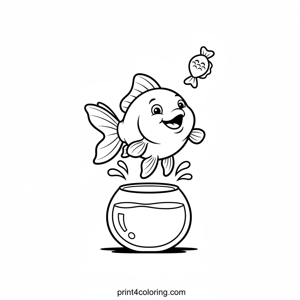 Dive into a delightful scene where an energetic goldfish makes an amazing leap! Watch as it gracefully flies out of its cozy water bowl, aiming perfectly to catch a yummy fish flake mid-air. Gentle splashes of water add to the excitement of this special snack time moment. Get ready to add vibrant colors to this fin-tastic adventure!