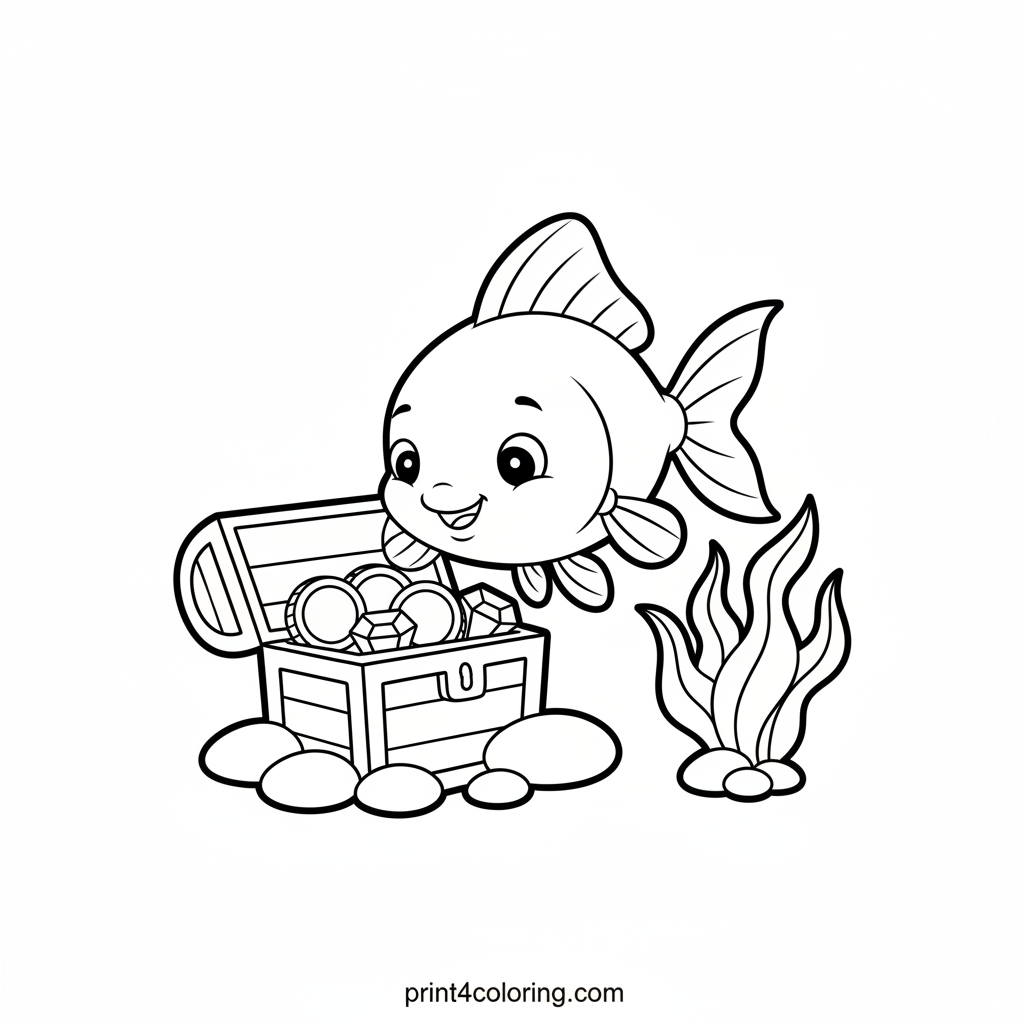 Join Goldie the brave goldfish on an exciting treasure hunt! Goldie is peeking into a small, open chest at the bottom of its tank, surrounded by smooth pebbles and a friendly plant. What sparkling discoveries will Goldie make? Bring this easy underwater adventure to life with your brightest colors!