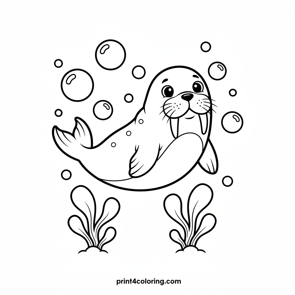 Graceful Walrus in a Bubble Wonderland Coloring Page