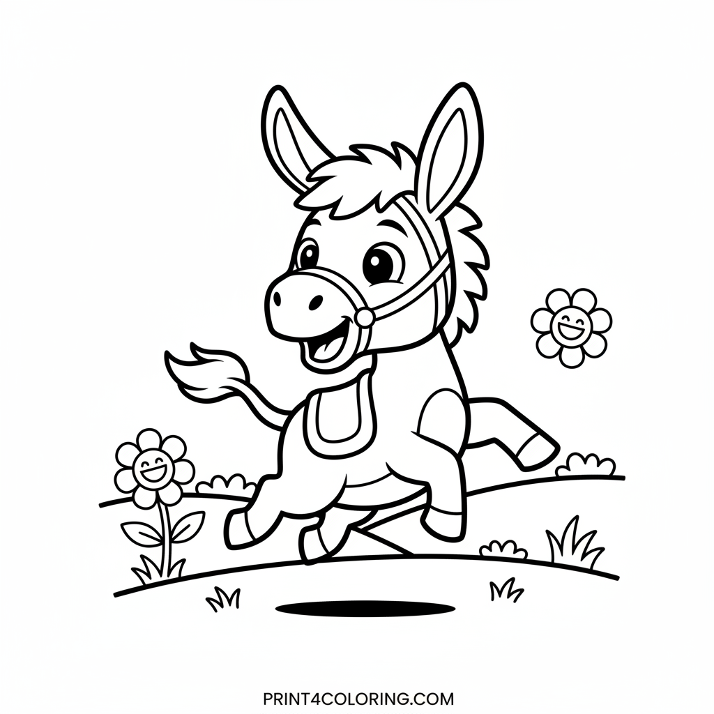 #donkey#animal#farm#meadow#gallop#happy#cute#coloring-page#printable