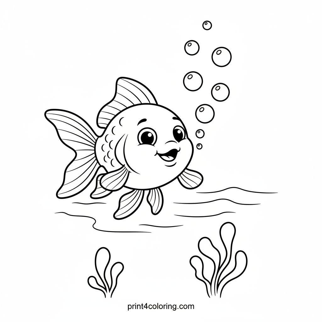 Dive into a world of underwater fun with our happy goldfish! This cheerful fish has big, friendly eyes and a wide smile, gently blowing a stream of round, clear bubbles in the water. Grab your crayons and bring this joyful aquatic scene to life with your favorite colors!