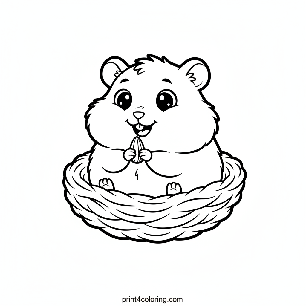 Meet our adorable, extra fluffy hamster enjoying a delicious snack! With big, sparkly eyes, this little friend is happily nibbling on a tiny sunflower seed, nestled safely in its soft, cozy home. Get ready to add vibrant colors to this heartwarming scene and bring this happy moment to life!