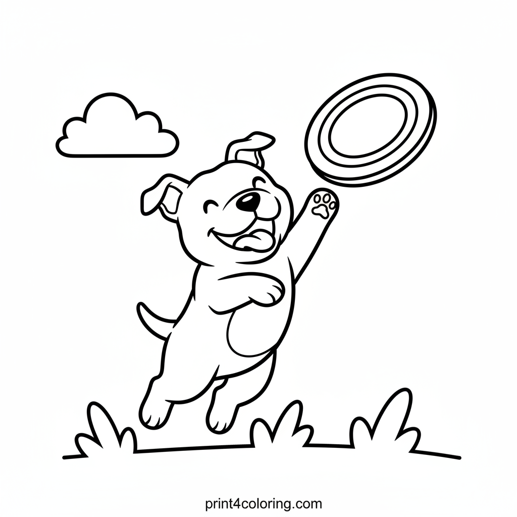 Happy Leaping Pitbull's Frisbee Fun Coloring Page