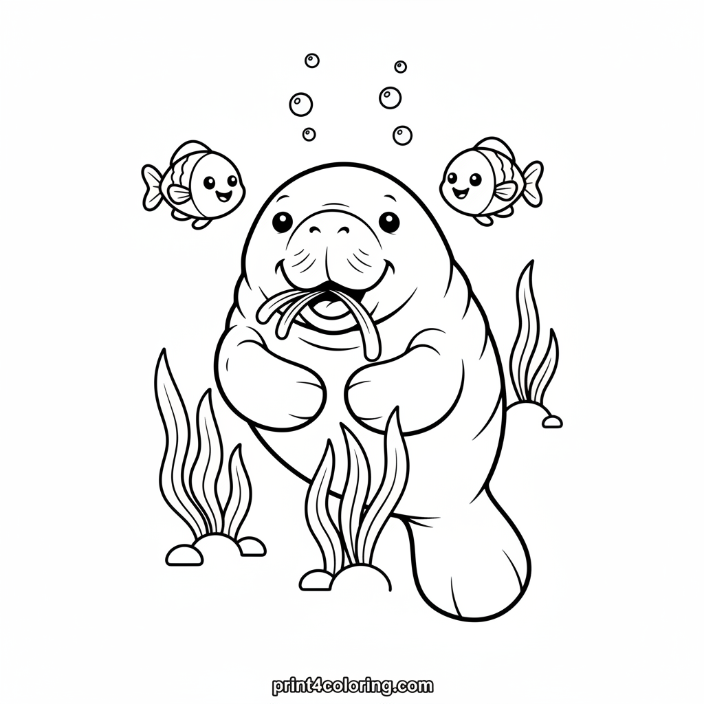 #manatee#sea-animal#underwater#ocean#seagrass#fish#lunch#coloring-page#printable