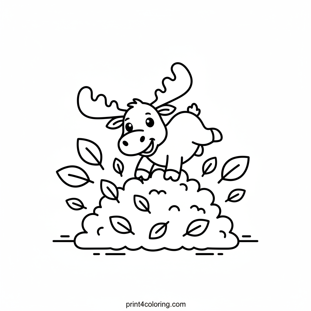Get ready for some autumn fun with a cheerful moose! This playful giant is having a blast, leaping high into a huge pile of colorful fall leaves. Watch as the leaves scatter all around, capturing a moment of pure joy and woodland adventure. Grab your crayons and bring this happy scene to life!