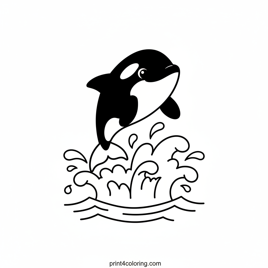 Dive into an exciting coloring adventure with this magnificent orca! Watch as it joyfully leaps high out of the sparkling blue ocean, creating a super fun and bubbly splash. Imagine the cool water flying everywhere as you bring this happy scene to life with your favorite colors. A perfect page for ocean lovers!
