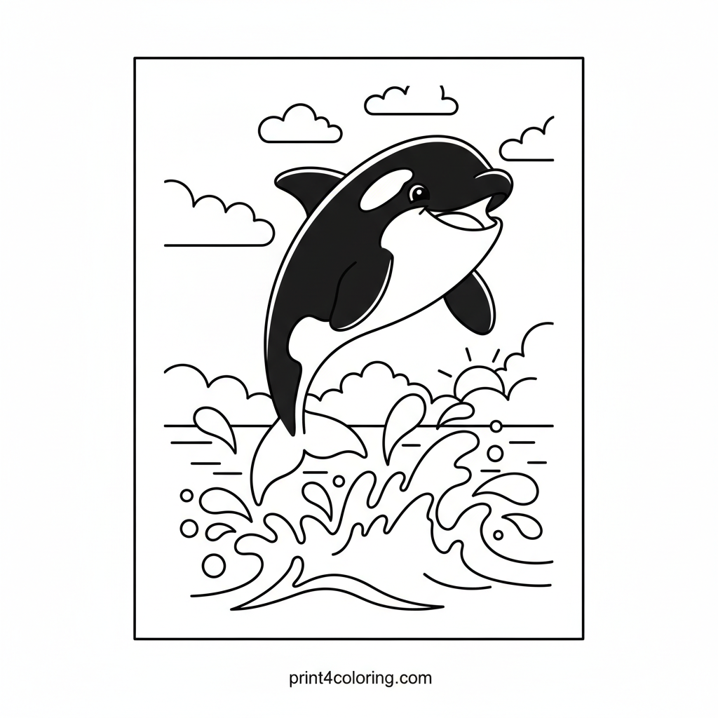 - 4🌈 **Sky Above** - What kind of sky is our happy orca jumping under? A sunny blue, a sunset orange, or even a cloudy day? You decide!