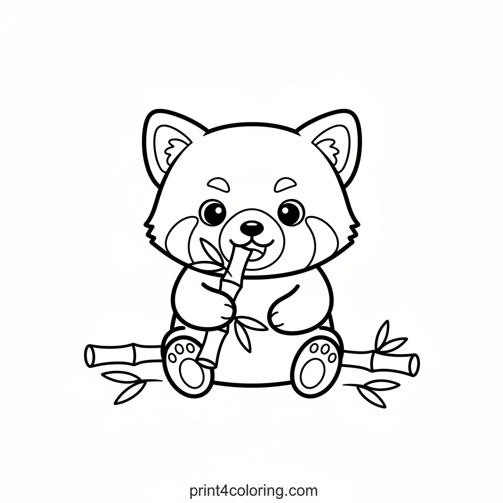 Join this adorable red panda as it enjoys a delicious bamboo snack! Our furry friend is sitting comfortably, munching on a tasty bamboo stalk, with more yummy shoots waiting nearby. This happy scene is perfect for little artists to bring to life with bright colors. Imagine the soft fur and the green bamboo!