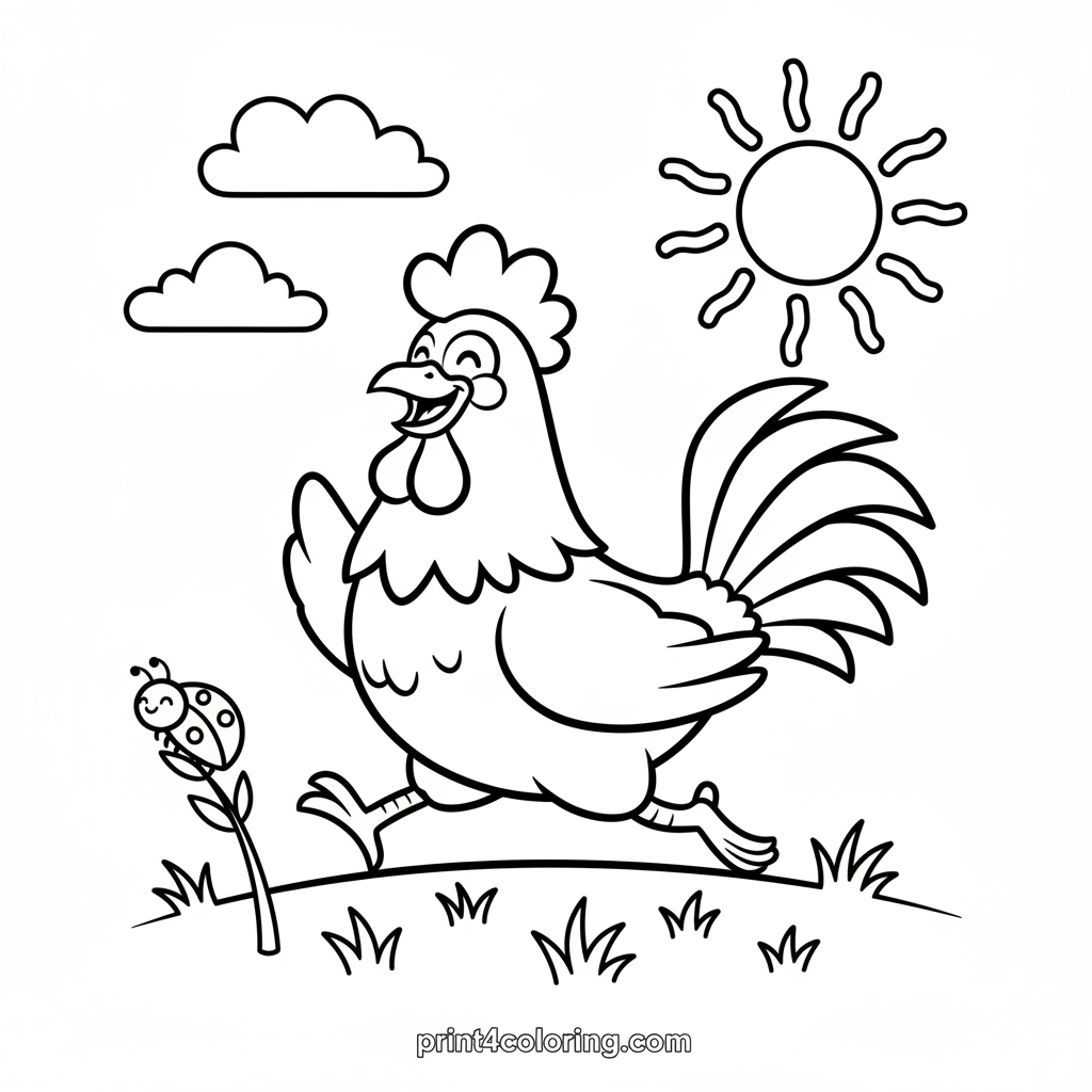 Wake up to a wonderful day with this cheerful rooster! See his feathers ruffled as he happily runs through a sun-kissed, grassy field. A tiny, friendly ladybug might be joining his morning adventure. Grab your crayons and bring this lively farm scene to vibrant life!