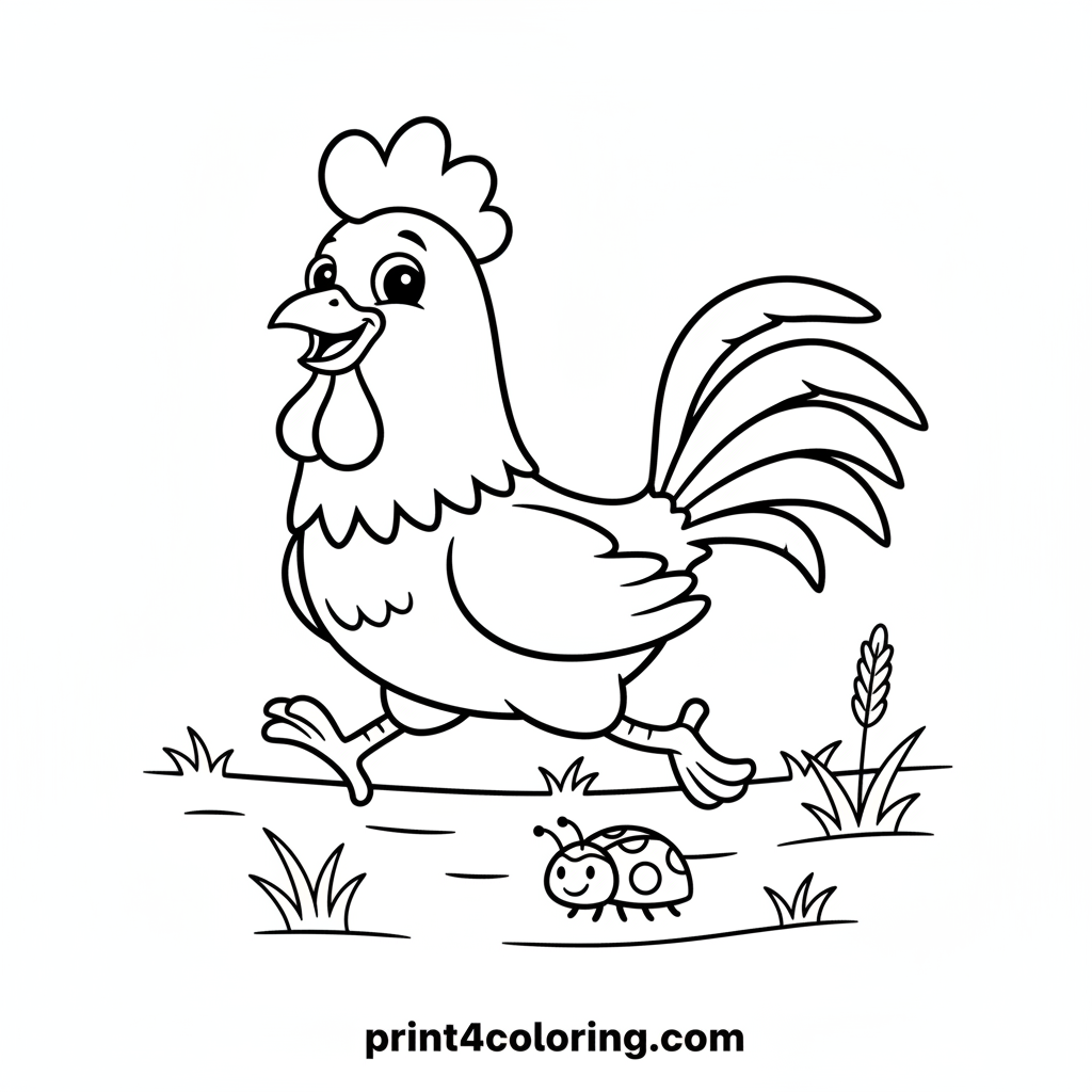 #rooster#farm#morning#running#ladybug#grass#sunny#animals#coloring-page#printable