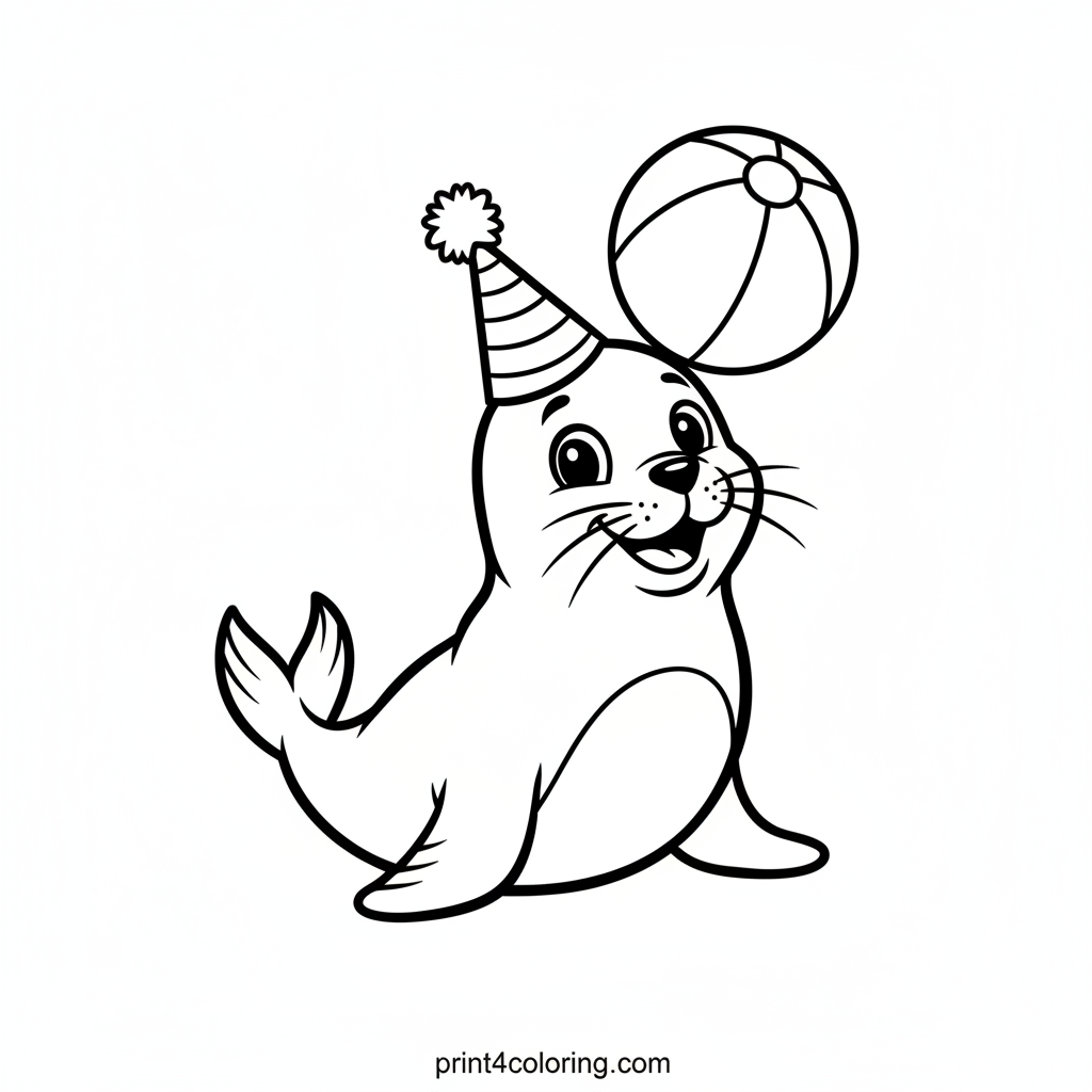 - 4🌈 Background Fun - Since this is an easy page, try a simple, happy background like a big blue sky or a colorful circus tent curtain behind our talented seal.