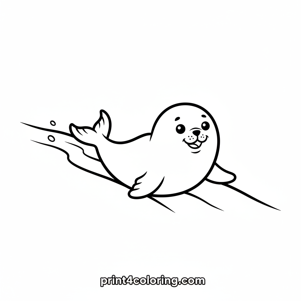 Join a cheerful seal as it enjoys a thrilling ride down a gentle, snowy hill! Watch its flippers spread out for balance and the wavy trail it leaves behind. This fun page captures the joy of winter play and the playful spirit of these adorable creatures. Get ready to add vibrant colors to this frosty adventure!